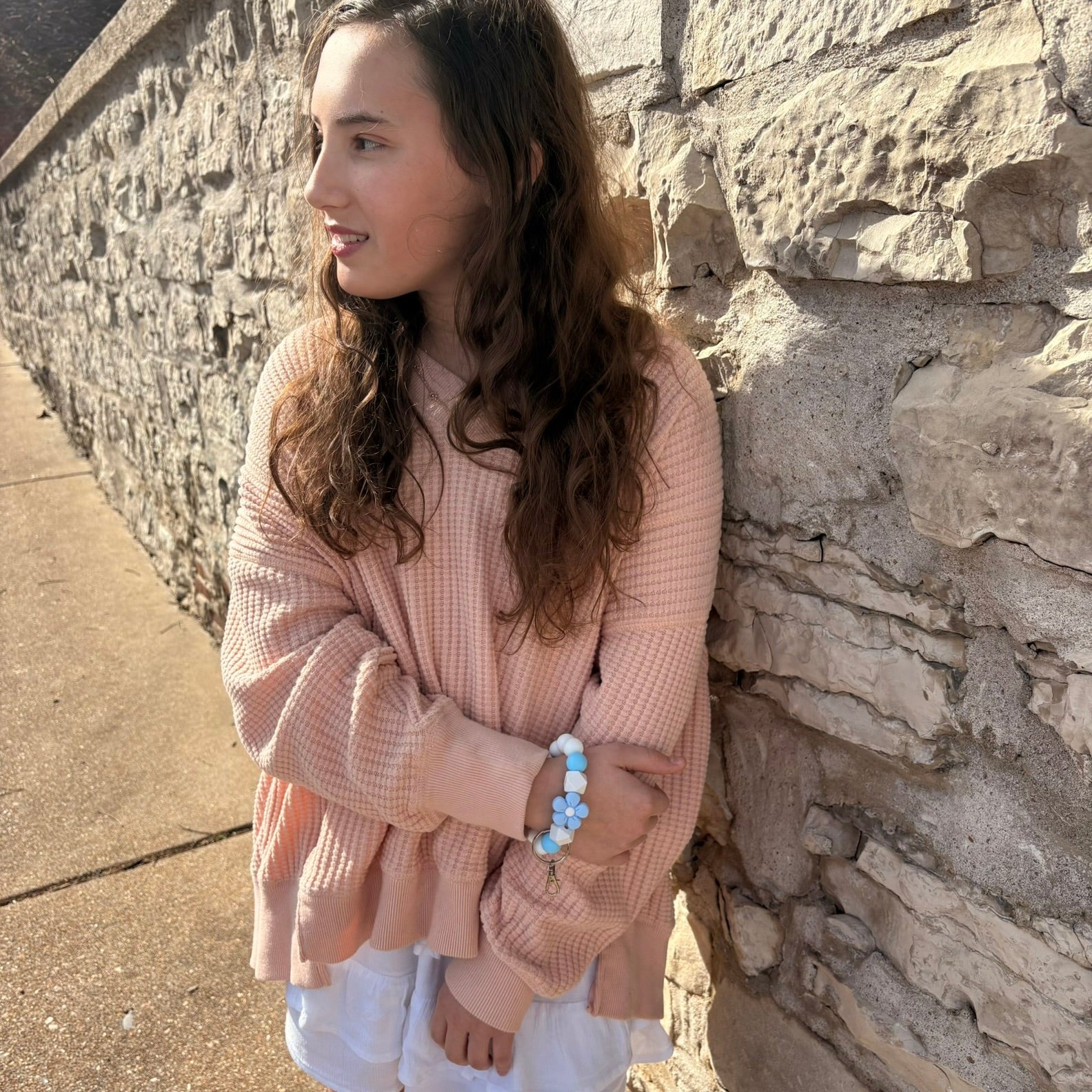 ✔ Elegant Design: A beautiful mix of blue and white, accented with a delicate flower bead.
