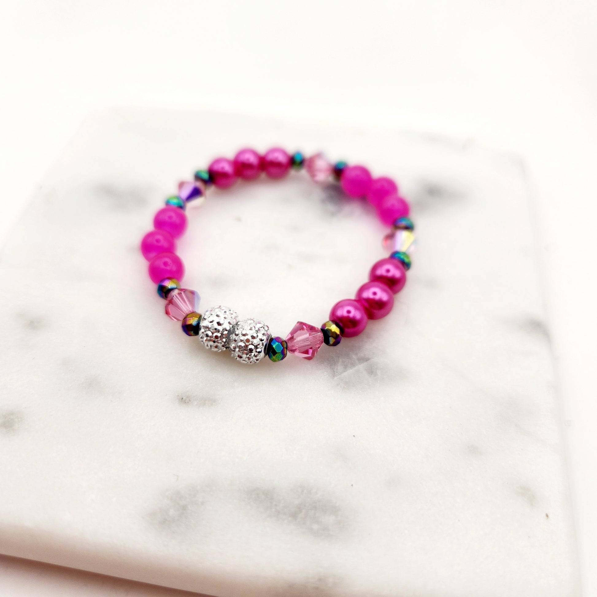 - 4mm Bright pink, pearl pink, and holographic faceted beads