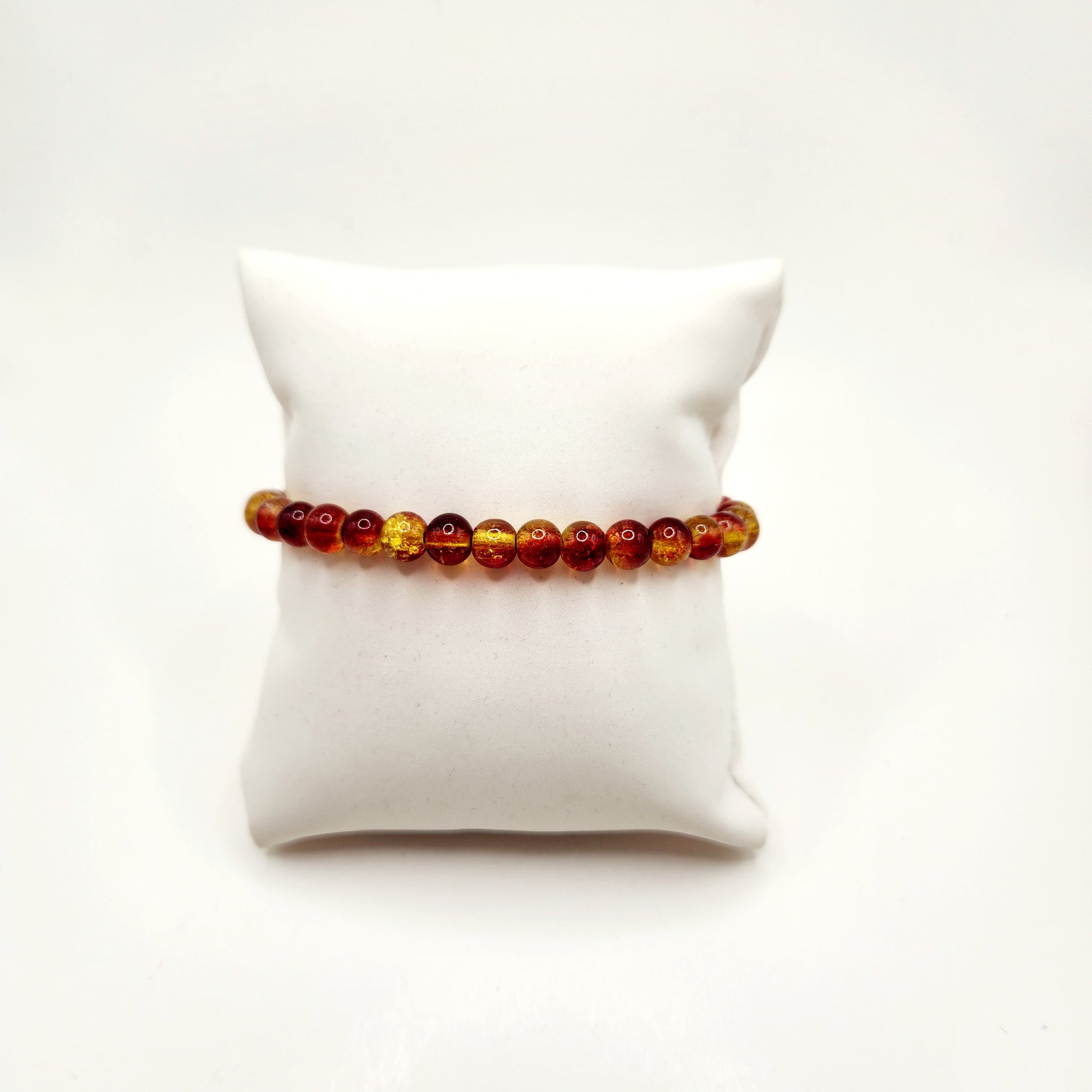 Bring the warmth and wonder of autumn to your wrist with this stunning seasonal accessory. Made from 6mm gold and red painted crackle glass beads, this bracelet shimmers with rich fall tones that instantly elevate any outfit.
