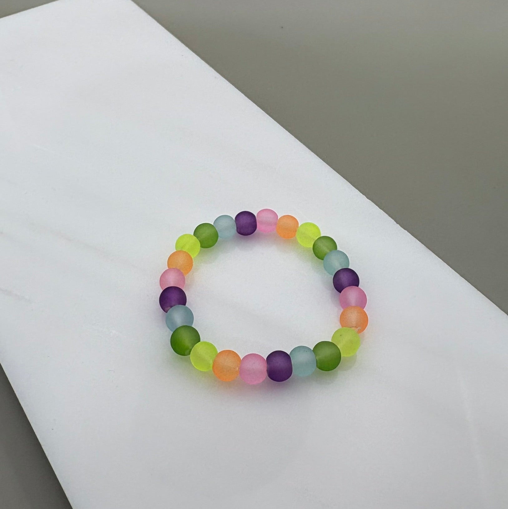 Bright, playful, and full of charm — this Rainbow Glow Bracelet is the perfect pop of color for your little one! Made with translucent beads in purple, blue, green, pink, orange, and yellow, it’s designed to sparkle and shine with every movement. Perfect for everyday wear, dress-up, or gifting a little burst of joy.